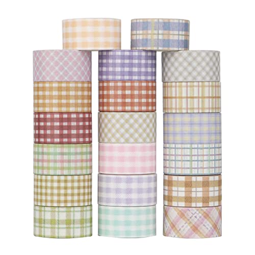 LGEGE 20 rullar med flerfärgat rutnät Washi Tape, 20 mm bred, rutigt mönster, japansk maskeringstejp för dekoration av scrapbook, Bullet Journal (2m)