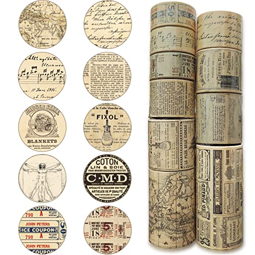 VEINARDYL 10 rullar (totalt 30 m) vintage washi-tape-set, vintage maskeringstejp nostalgisk stil dekorativa klistermärken för gör-det-själv-hantverk scrapbooking bullet-journal planerare presentpapper