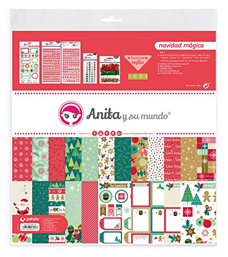 Anita y su mundo 37080650. Jul Scrapbooking kit, 13 tryckta papper, Klistermärken, Abecedy, Enamel Dots, Paljetter och Washi Tape, Magiska julkollektion