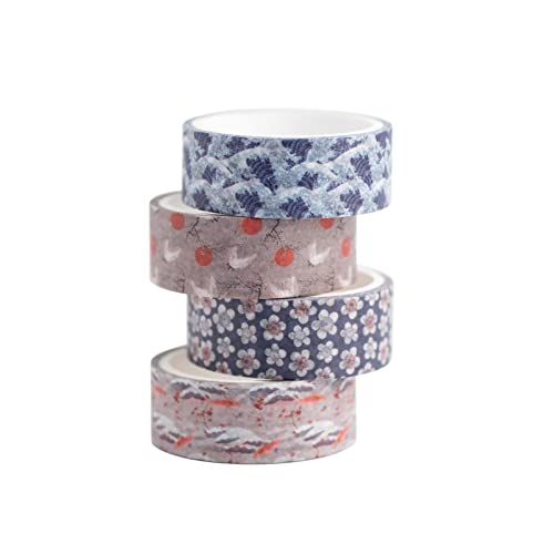 Grupo Erik Hokusai 4 Rolls Washi Tape | Scrapbook Tape For DIY | Washi Tape For Scrapbooking | Decorative Masking Tape | Scrapbooking Supplies | Scrapbook Accessories | Gift Wrapping