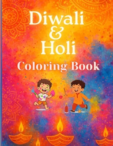 Diwali and Holi Coloring Book for Kids Ages 4-8: Fun and Easy Indian Festival Coloring Pages: Rangoli, Diyas, Crackers, Ganesha, Colors, Water Balloons, and Festive Fun for Boys and Girls
