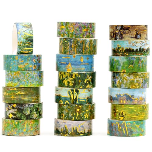 Songdao 20 rullar guldfolie Washi Tape Set oljemålning stil dekorativ maskeringstejp färgstark för konst, gör-det-själv-hantverk, dagbok, planerare, scrapbook, förpackning (Monet's Water Lily)
