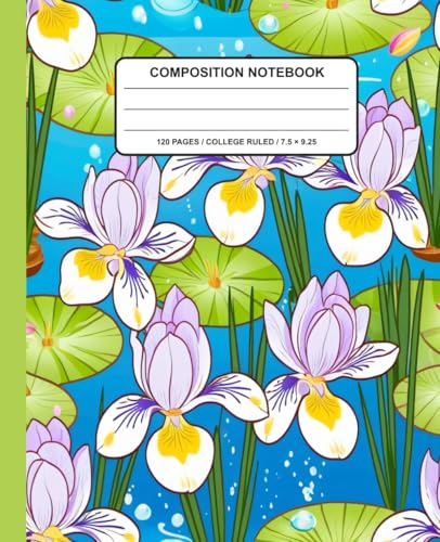 Hardcover composition notebook Cute Water Lily | Ruled Notebook | Composition notebook ruled | Size 6 x 9 inch (15.24 x 22.86 cm), 120 pages