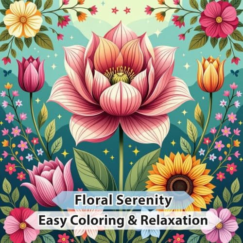 Floral Serenity: Coloring Book for Adults and Kids, with Water Lily, Tulips, Roses, Orchids & More (Easy Coloring & Relaxation)