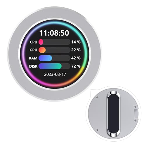 Waveshare 2.1inch USB Monitor Round IPS Panel Water Cooler Screen/PC Case Secondary Screen/Desktop RGB Ambient Screen, 480×480 Resolution, Music Spectrum Analysis Function, CNC Silver Metal Case