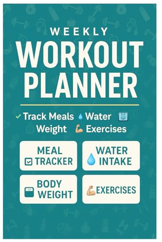 Weekly Workout Planner Notebook Track Meals, Water, Weight, and Exercises with Ease: Stay motivated and monitor your fitness progress with structured, easy-to-use daily pages.