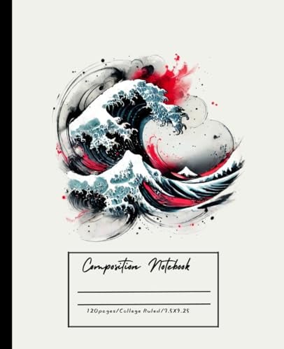 Sumi-e Ink Wash Art Notebook: The Great Wave Watercolor Design: Traditional Japanese Brush Painting Journal with Black, White, and Red Composition | College Ruled Pages
