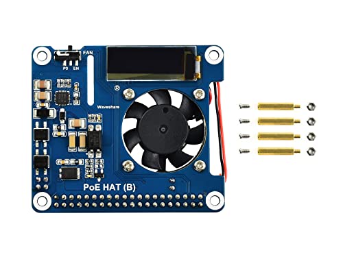 Waveshare Power Over Ethernet HAT For Raspberry Pi 3B+/4B, 802.3af-Compliant with OLED for real-time monitoring temperature, IP, and fan status