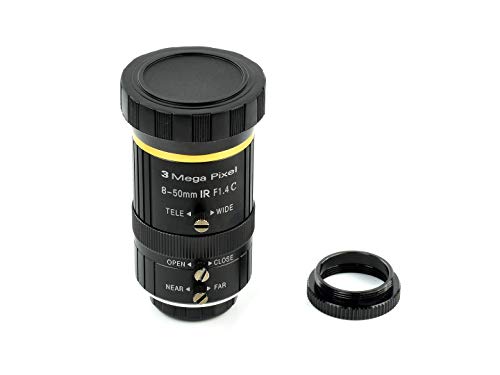 Waveshare Quality Industrial Zoom Lens 8-50mm Adjustable Focal Length with Adjustable Angle of View C-Mount Compatible with Raspberry Pi Camera
