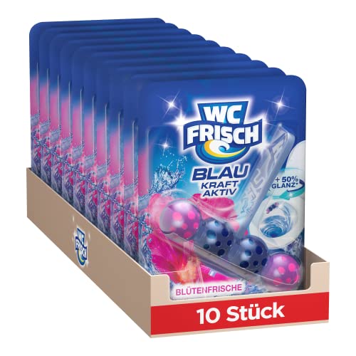 Toalett fräsch kraft aktiv blåsköljmedel blomma friskhet (förpackning med 10), WC renare med innovativ luktstopp formel, doftstenar för extra friskhet och synlig rengöring