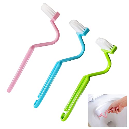 ZENVALY Toalettborste, 3 stycken WC kantrengörare, toalettborste för badrum, böjd toalettborste långt handtag med starka borst för djuprengöring rengöring toaletter hörn