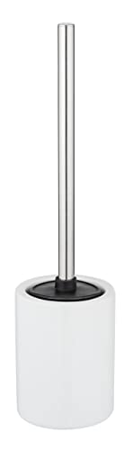 WENKO Keramisk WC-uppsättning Laviano vit glänsande, fristående toalettborsthållare med utbytbara silikonlameller WC-borsthuvud, speciell anti-vidhäftande effekt för hygienisk rengöring, Ø 9,7 x 39 cm