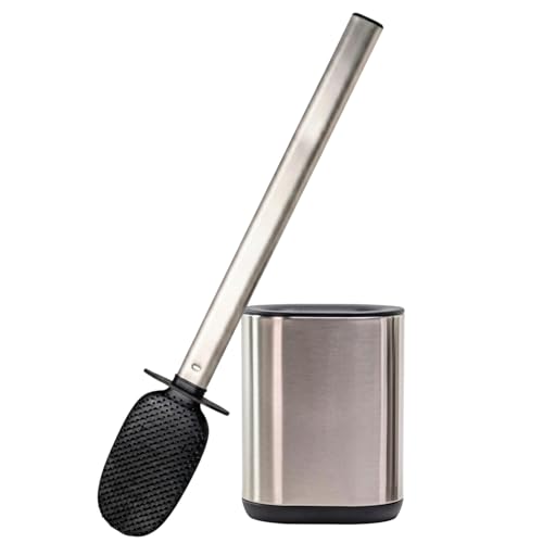 Erreke Silikontoalettborste med Rostfritt Stålhållare, Flexibel TPR WC-borste för Bättre Rengöring, Väggmontering utan Borrning, Hygienisk och Hållbar, Silverfärg
