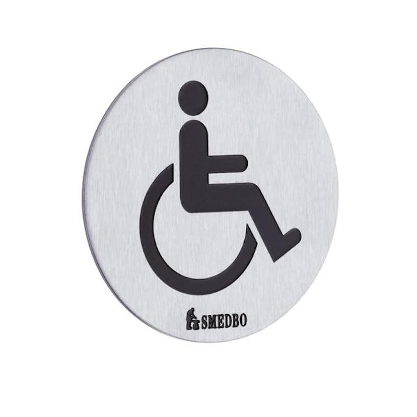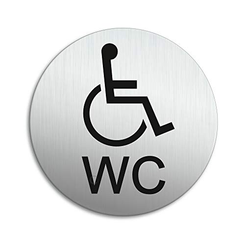 Skylt WC rullstol Ø 100 mm dörrskylt av aluminium vertikalt borstad rostfritt stål utseende självhäftande 53204-K