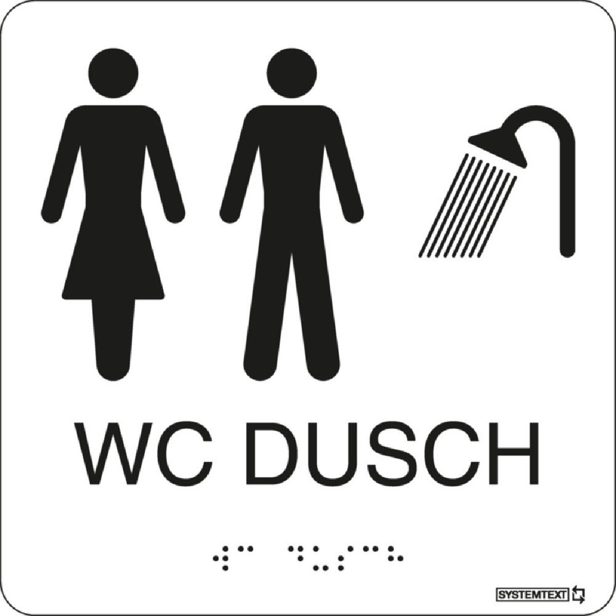 Taktil skylt "WC/Dusch Dam/Herr" Vit