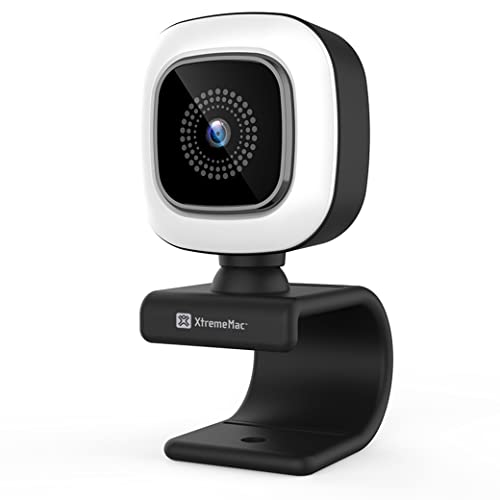 XtremeMac® Premium USB 1080p HD-webbkamera med LED-belysning, mikrofon, 360° svängkraft för livestreaming, Skype, zoom, vlog (PC, Mac, bärbar dator, kompatibel med programvara med Open Broadcaster och Xsplit)