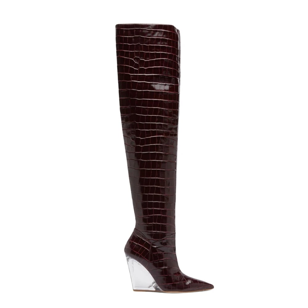 LAMODA - Eerie Knee High Chunky Wedge Boots, EU 41, Svart PU skalle, 41 EU