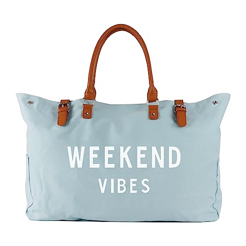 Beach Tote Bag for Women, Oversized Travel Tote Bag with Vegan Leather Handle, Weekend Vibes Blue