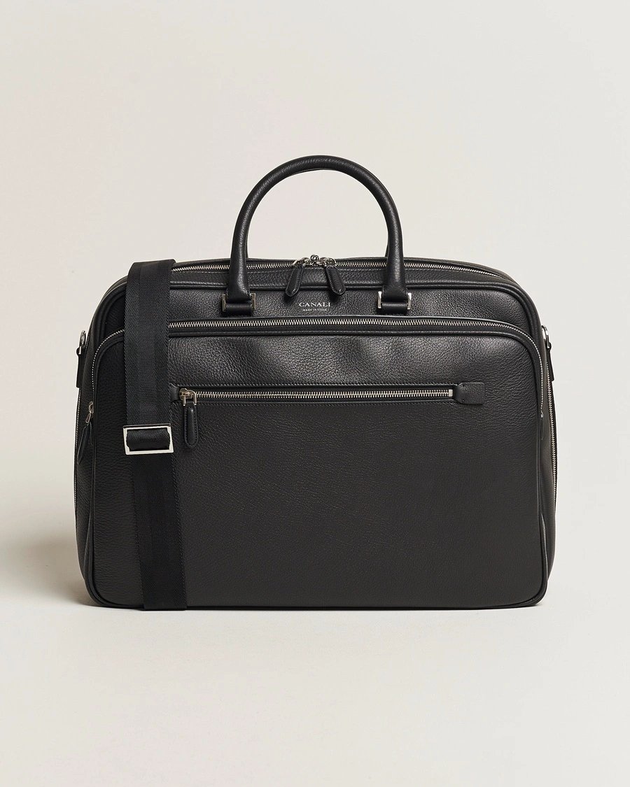 Canali Grain Leather Weekend Bag Black