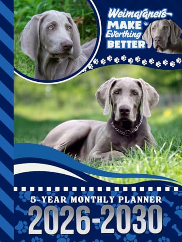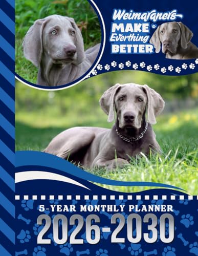 5-Year Monthly Planner 2026-2030: Hardcover / Dated Large / 60 Month Agenda / With Notes Pages - To Do List / Weimaraner Dog Art Cover Design