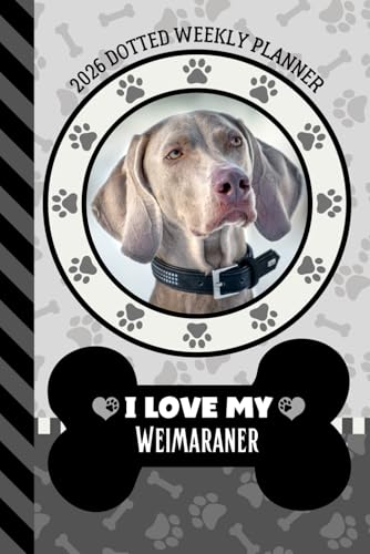 2026 Dotted Weekly Planner: Hardcover / Dated 6x9 Vertical Weekday Layout With Dot Grid Note Pages / Habit Tracker / Jan - Dec / Small Personal Diary / I Love My Weimaraner Dog Art Cover