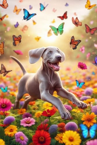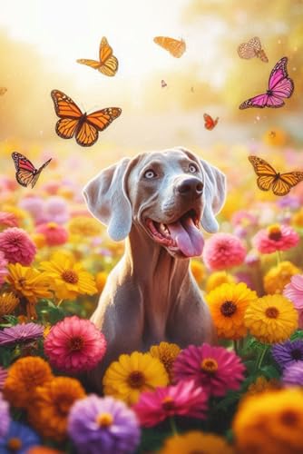 Weimaraner Puppy in a field of colorful flowers Notebook - Large 6 x 9 inches - 127 Pages