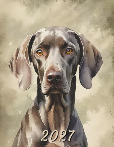 2027: Large Monthly Calendar Planner – Watercolor Dog Weimaraner