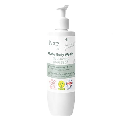 Naty Baby Body Wash 240 ml – Naturliga ingredienser, Milt för ögonen, Parfymfri, Fri från SLS/SLES, Dermatologiskt Testad, Vegansk, COSMOS Natural-certifierad,