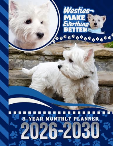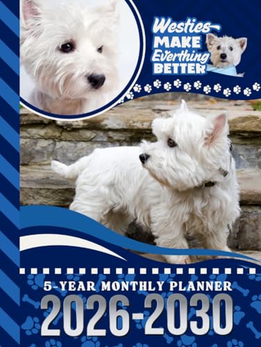 5-Year Monthly Planner 2026-2030: Hardcover / Dated Large / 60 Month Agenda / With Notes Pages - To Do List / Westie - West Highland Terrier Dog Art Cover Design