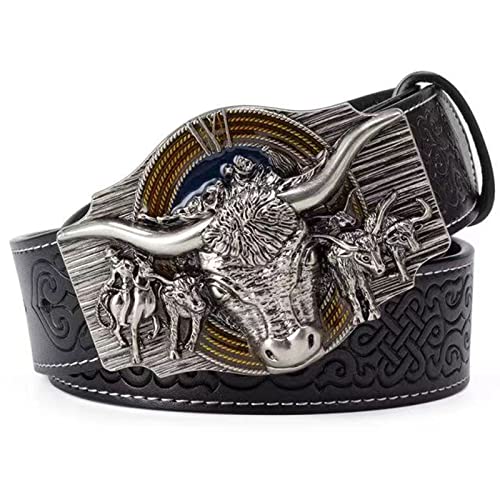 Bälte western för cowboy, Vintage Long Horn Bull Rodeo Western Cowboy bälte,Silver black,120CM/47.3''