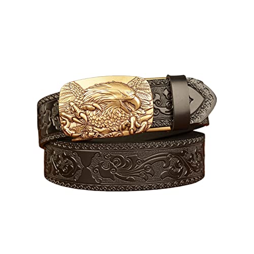 Bälte män, Western Denim Bälte, Pure Copper Eagle Spänne Äkta läderbälte för män Kvinnor Personlighet Jeans Bälte,Black,110CM/43.3''