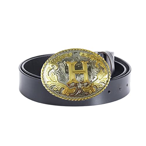 Western bälte, initialt bältesspänne, ABCD till Z Stora bokstavsbältesspännen för män och kvinnor Rodeo guld bältesspännen,H black,120CM/47.3''