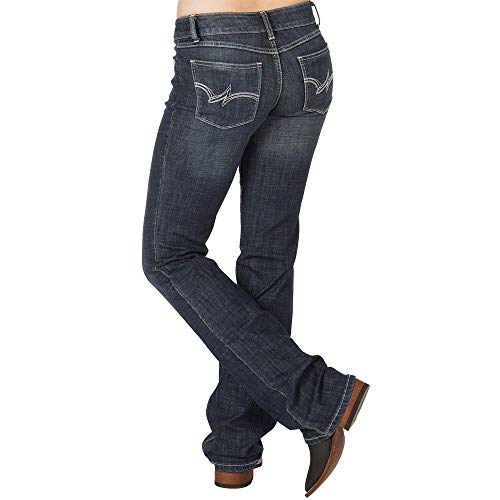 Wrangler Dam Western Mid Rise Stretch Boot Cut Jeans, Dark Indigo, 0W x 34L