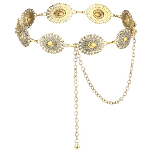 Giantree Western kedjebälte för kvinnor, silver concho länkkedja Western Cowgirl-bälten för jeans klänningar, Guld, one size