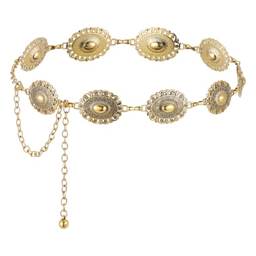 Amabro Dam metall kedjearmband, Western Concho kedjebälte justerbart boho midjekedjor för klänningar jeans cowgirl, Guld, Women Boho Chain Belt