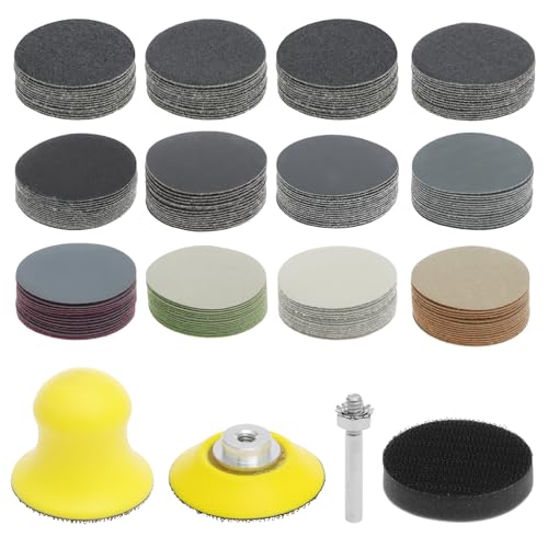 184 Pieces Sanding Wheels Pad Kit 50mm Wet Dry Sanding Pads 60/80/100/150/240/400/800/1200/2000/3000/5000/10000 Sanding Wheels Adapter for Metal Wood Glass Car Polishing