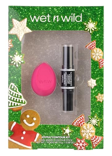 Wet n Wild Joyful Contour Kit, Presentförpackning med Highlighter för Ansiktet och Dubbelsidig Contour Stick, inklusive Sminksvamp