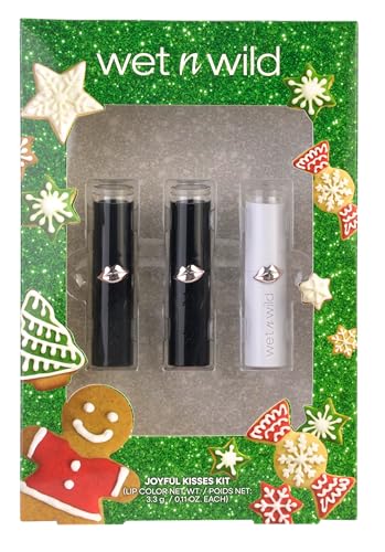 Wet n Wild Joyful Kisses Kit, Presentask med 2 Matte Läppstift och 1 Krämigt Glansigt Läppstift med Långvarig Effekt, Vårdande och Högpigmenterade i Nyanserna Rött, Kanel och Rosa