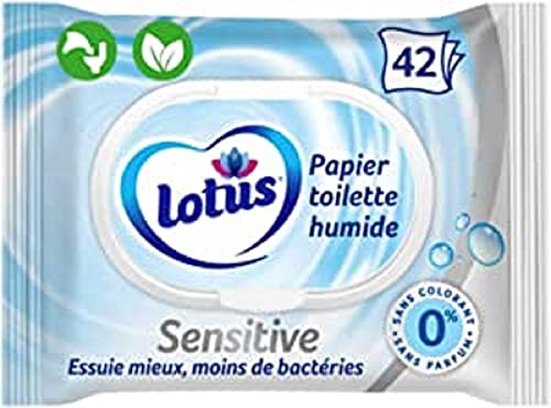Lotus Wet Sensitive toalettpapper – utan färgämnen och parfym, FSC-fibrer 100% naturligt ursprung – 42 ark (set om 1)