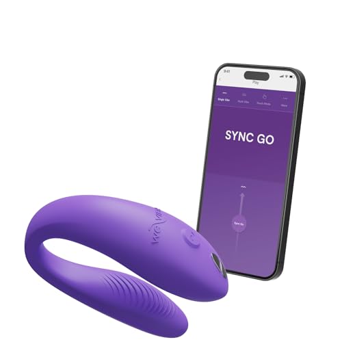 We-Vibe Sync Go Vibrator för par, reseutgåva, C-formad vibrator, bärbar vibrator för par, delad vibration, uppladdningsbar, resväska, lila