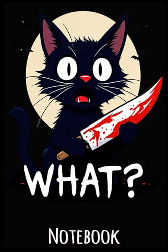 Funny Black Cat Notebook with Knife "What?" Halloween Meme Boxy: 6x9” Ruled Journal – Your Space for Notes, Ideas & Everyday Writing
