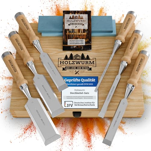 HOLZWURM professionellt trä mejselset, 6 delar mejselset med whetstone, slipningsinstruktioner (engelska språket inte garanterat) och träfodral.