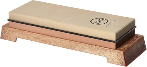 MITSUMOTO SAKARI Japanese Knife Sharpening Stone, Professional Kitchen 1000/3000 Grit Knife Sharpener Stone, Non-Slip Wooden Seat whetstone knife sharpener