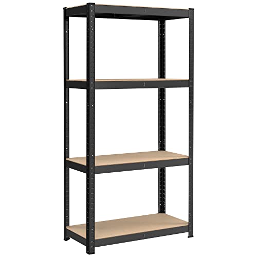 Relaxdays Kraftig lasthylla, 4 golv, HBT 157 x 80 x 41 cm, 280 kg lastkapacitet, metall, förvaringshylla för källare, garage, svart