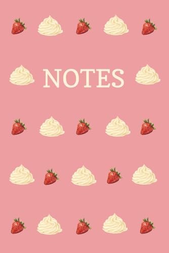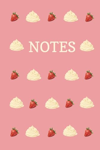 Pink Strawberries and Cream Notebook: Cute, Strawberry, Picnic, Afternoon tea, Journal, Exercise Book, Composition notebook, Whipped Cream, Birthday, ... Paperback, Wide ruled, 100 pages, 6x9 inches