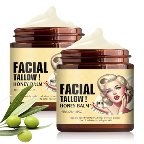 Whipped Beef Tallow and Honey Balm, Grass Fed Grass Finished Face Cream, Tallow Moisturiser, Hydrating Face and Body Balm, Deeply Nourishing Skin Care, 4.23 oz (2 Pcs)