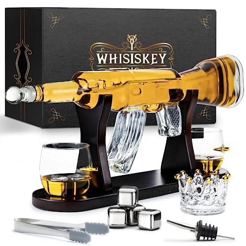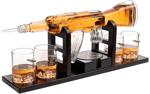 KROWN KÖK - Pistol whisky karaff set. Inkluderar whiskyglas, underlägg och träbas. Perfekt present till pappa. för Bourbon, Scotch, Liquor, etc.