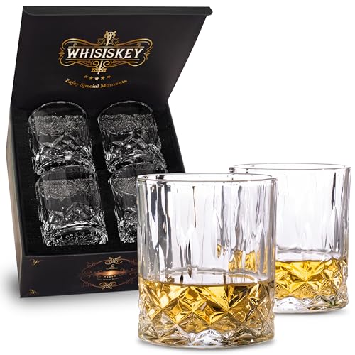 WHISISKEY - Whiskyglas Set - Whisky Gåvoset - Whiskeyglas - Present till Män - Presentidéer för Män - Födelsedagspresent Man - Presentlåda, 4 Whiskyglas 285ML, Tillbehör