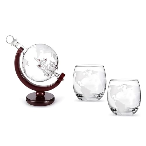 Hsthe Sea Whisky Globe Karaff med Glasset, Whisky Karaff Set med 1 Karaff och 2 Glas, Globe Karaff med Ship för Whisky, Scotch, Vodka presentset