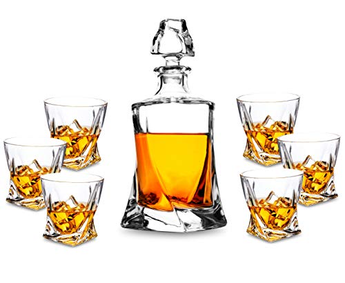 KANARS Whiskykaraff och Whiskyglas set, 800 ml Blyfri Kristall Whisky Karaff med 6 Whisky Glasögon 300 ml för Bourbon, Cocktail, Cognac, Tequila, Martini, Unik Snygg Presentask, 7-Delar